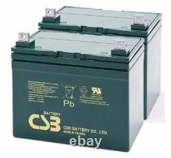 Deux (2) batteries SLA/AGM CSB 12V 39AH Premium. Type de batterie : AGM/SLA U1.Type de terminal : Écrou et boulon. Dimensions (LxPxH) : 7,68" x 5,16" x 7,13". Poids : 25,35 lbs par batterie. Jouets à conduire pour enfants. Ensemble de remplacement de batterie de scooter de mobilité 12V 39AH U1 - Mise à niveau AGM SLA 2-Pack.