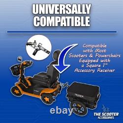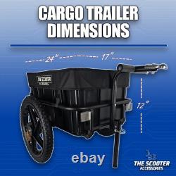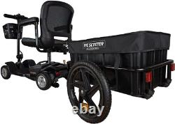 Dimensions intérieures de la remorque : 22 3/4"L x 15 1/4"W x 12"D Caractéristiques : Facile à assembler - Clé pour l'assemblage incluse Pneus pneumatiques de 16" avec jante en nylon Fabriqué en plastique recyclable résistant aux chocs Couvercle amovible pour la boîte de transport Support de béquille de remorque pour maintenir votre remorque à niveau lorsqu'elle n'est pas montée sur votre dispositif de mobilité. Support de fixation réglable pour que la remorque reste à niveau sur différentes unités de mobilité de hauteur variable.