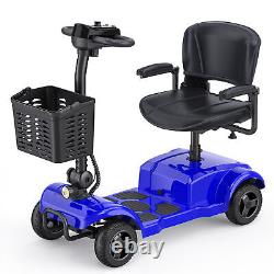 La configuration à 4 roues offre une stabilité supplémentaire. Démontage rapide et facile en 4 pièces faciles à transporter. Siège pivotant réglable en hauteur avec dossier rabattable. Confortable, avec accoudoirs rembourrés et réglables. Livré avec un grand panier de transport en métal. Pneus solides, sans marquage et à plat pour un voyage sans souci. Roues anti-basculement pour plus de sécurité. Phares pour une sécurité accrue. Le guidon delta est facile à ajuster ; contrôle de l'accélérateur ergonomique avec fonctionnement facile en roue libre. Le dossier du siège se plie complètement à plat, ce qui est pratique lors du transport ou du stockage du scooter. Livré avec un pack de batterie facilement amovible et à connexion rapide qui peut être chargé séparément du scooter. 40,55x19,68x18,89 pouces. Capacité de poids 300 lbs. Vitesse maximale 6,5 mph. Angle de montée maximal 15°.Rayon de braquage 53,75. Dégagement du sol 2,5. Largeur des accoudoirs, levier de fonctionnement, rotation de 360° du siège Les dimensions du siège sont de 14,2" de largeur et 15,75" de profondeur. Poids de la batterie 9,5 kg.